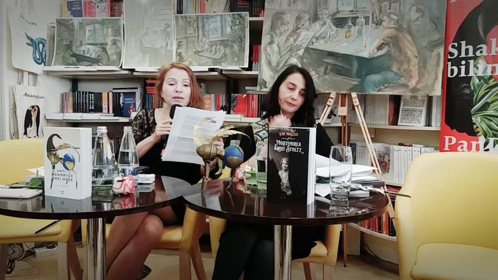 - La sfârșitul dezbaterii, cele două șiruri de scaune din librărie au format un telefon fără fir, alimentat din spate, de un suflor care transmitea cuvinte din creațiile celor două scriitoare. Cuvintele recepționate în față au fost transpuse pe șevalet, alcătuind un poem colectiv, în ceea ce am numit: „primul performance de poezie șoptită live”.